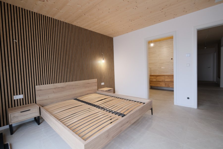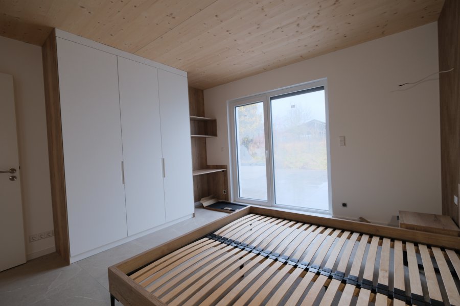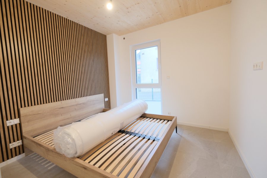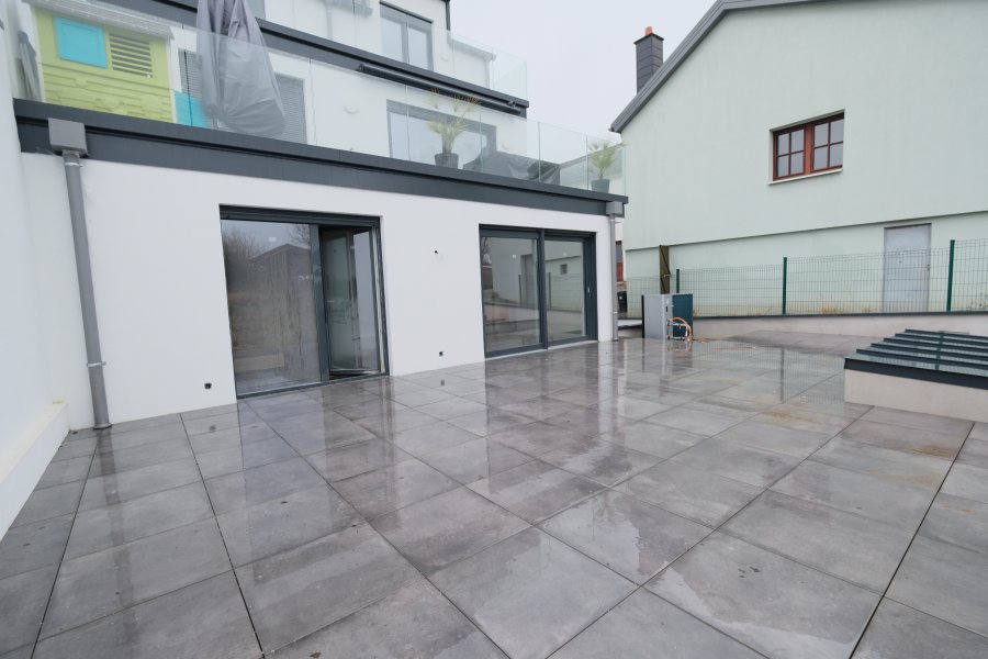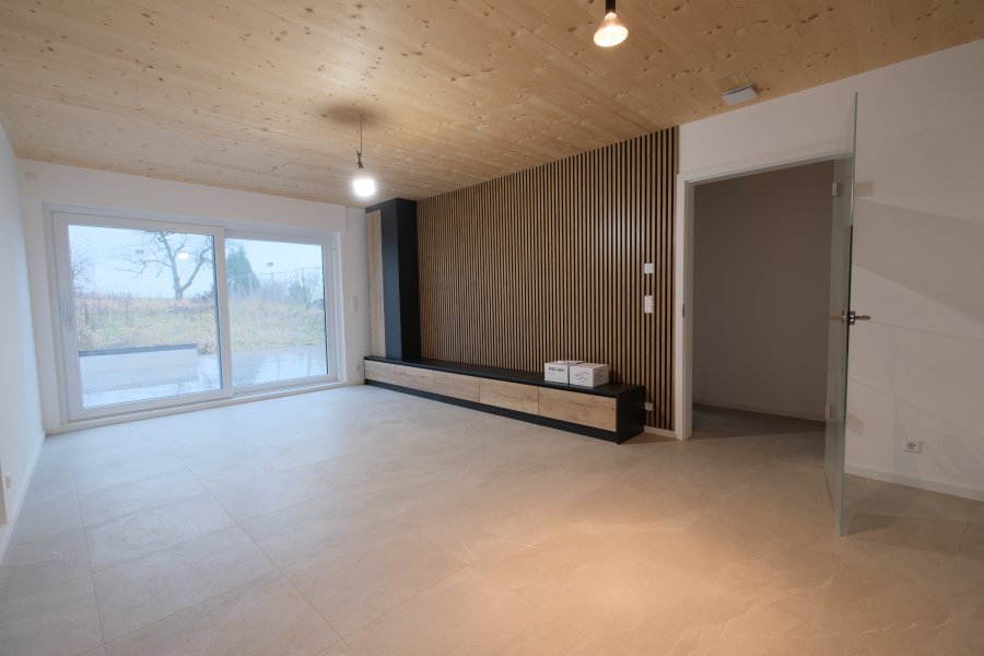 NOUVELLE CONSTRUCTIONBel APPARTEMENT meublé au Rdch d'une résidence de 3 unités avec 104 m2, Hall d'entrée, 3 chambres à coucher, 2 Salles de Bains, W.C. séparé, Living + Cuisine équipée, Terrasse de 25 m2, Jardin de 167 m2, 1 parking intérieur avec cave.