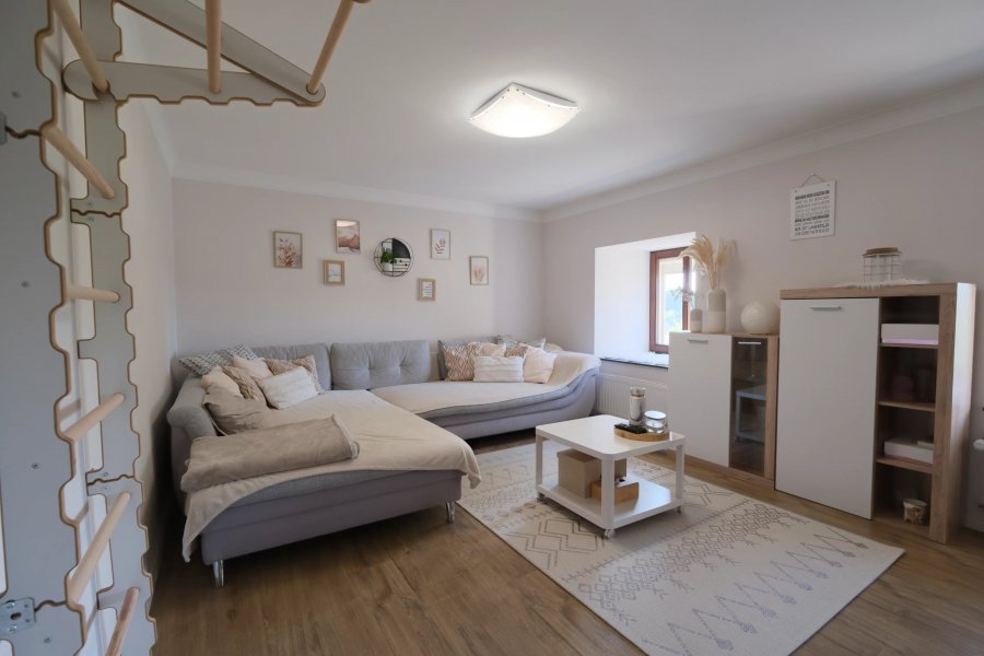 L'agence Chaves vous présente cette superbe maison jumelée située à Heiderscheid, Luxembourg, offrant un espace de vie généreux de 140 m².Avec ses 13 pièces rénovées, dont 4 chambres confortables, cette propriété est idéale pour une famille. Sa façade traditionnelle s'harmonise parfaitement avec ses intérieurs modernes, où la lumière naturelle et le style contemporain se rencontrent.